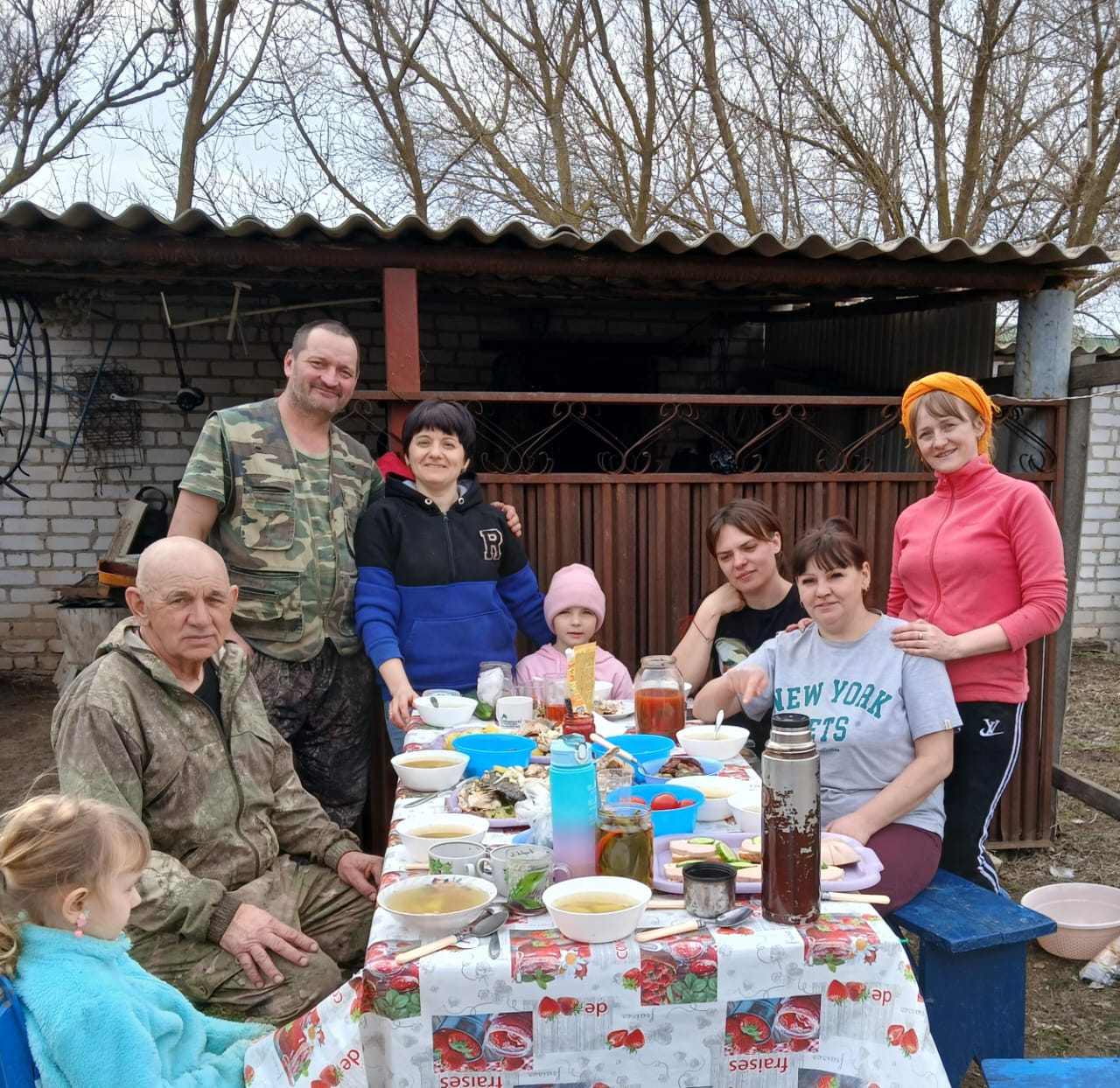 После проведенной работы, соседи организовали совместный обед с ухой и веселыми байками.